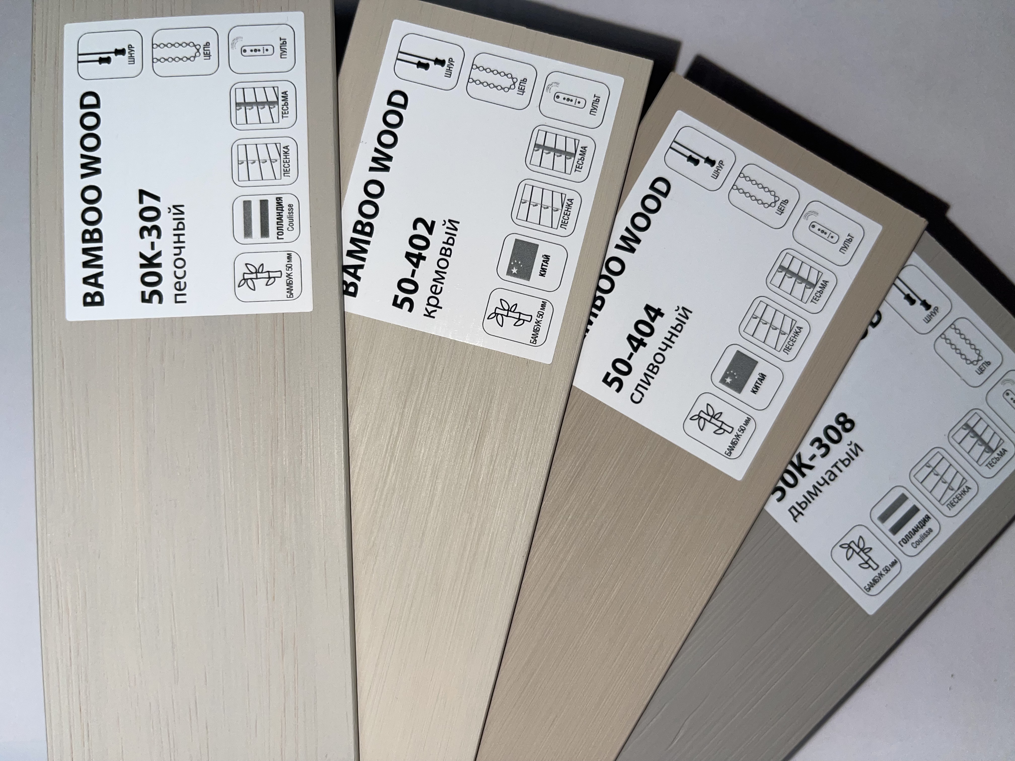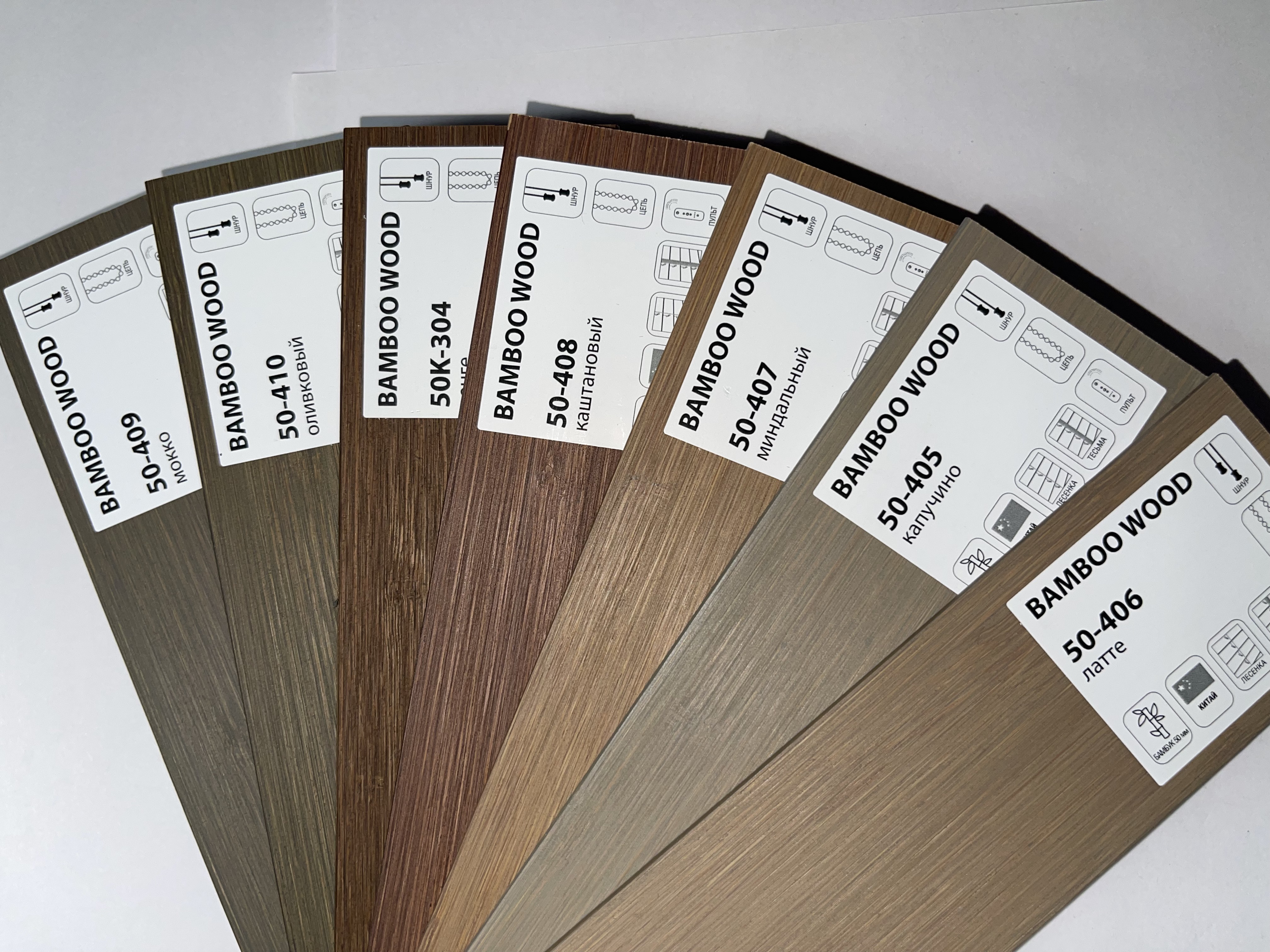 Каталог материалов для бамбуковых горизонтальных жалюзи 50 мм